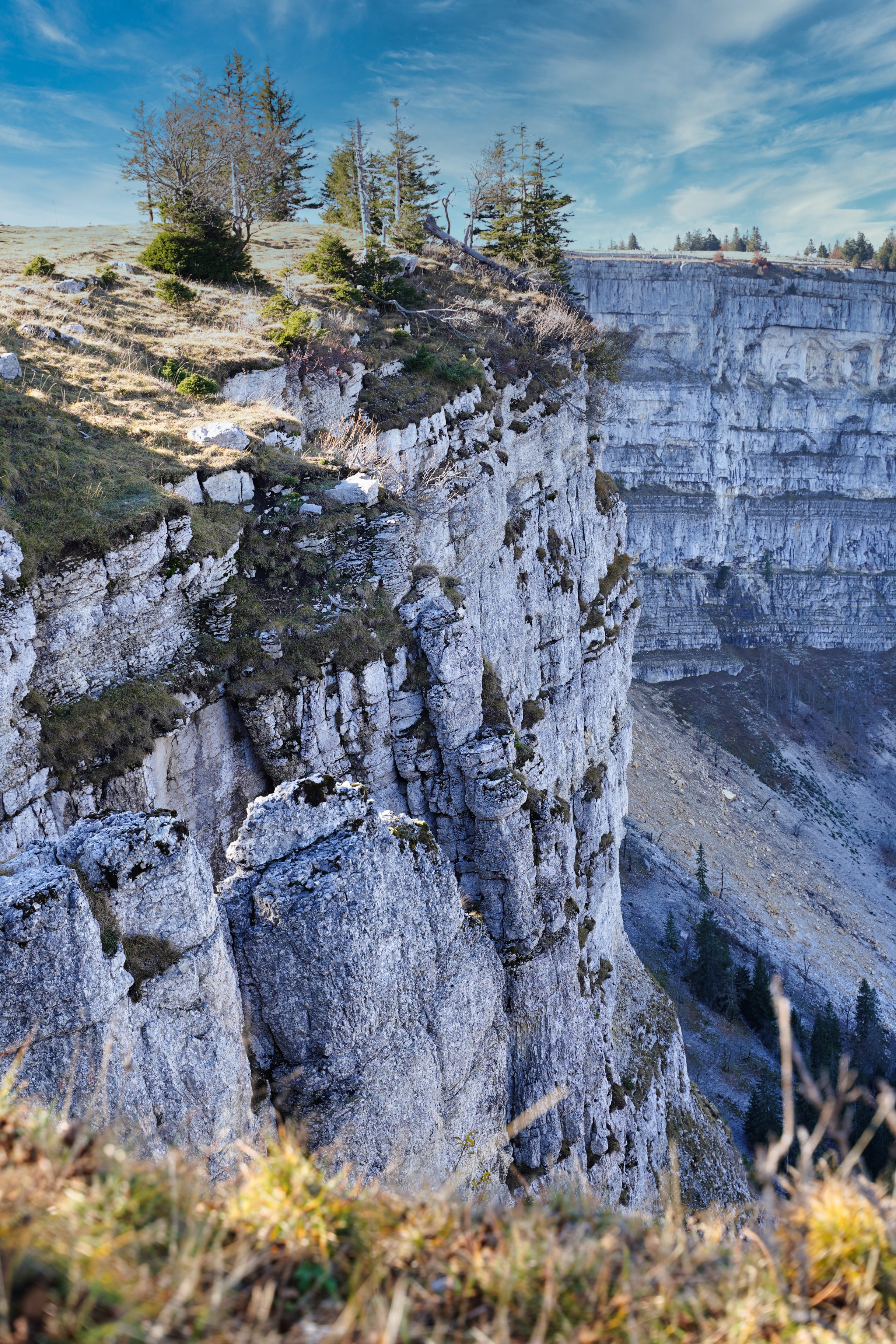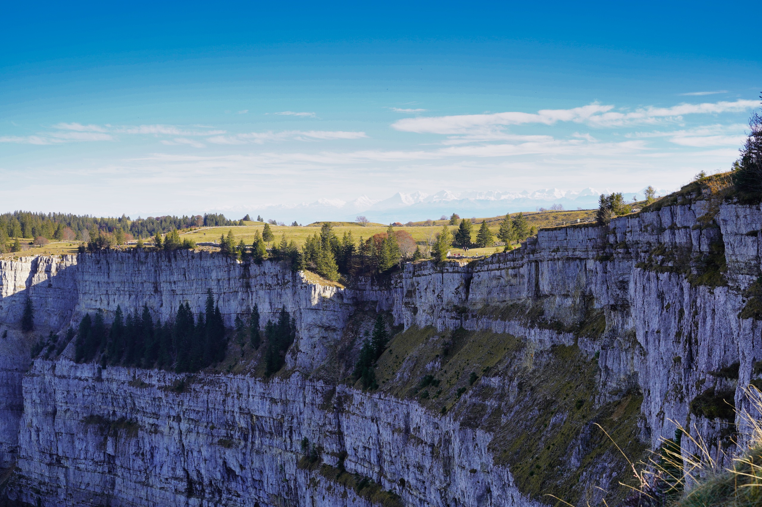 Wie eine Arena aus Fels, erbaut durch die Kräfte der Natur während der letzten Eiszeit, hebt sich dieses monumentale Gebilde aus Stein an der Grenze zwischen den Kantonen Neuchâtel und Waadt empor. Wer mutig ist, lässt beim Verweilen die Beine über die bis zu 160m hohen Felsvorsprung baumeln. Vor dem Abstieg darf man nicht den Ausblick auf das Alpenpanorama des wenige Hundert Meter entfernten Gipfels des Soliat verpassen. Jede Jahreszeit lässt die Landschaft ganz anders aussehen. Am liebsten mag ich jedoch den Herbst der die Blätter auf den Bäumen in ein buntes Meer aus Farben verwandelt, den Nebel über den Seen im Alpenvorland wie Zuckerwatte erscheinen lässt und die Gipfel der Alpen in ein unschuldiges erstes Weiß tauchen lässt. Ich empfehle eine Rundtour von Champ-Du-Moulin über die Schlucht der Areuse und den Abstieg über Noiraugue zurück zum Ausgangspunkt.