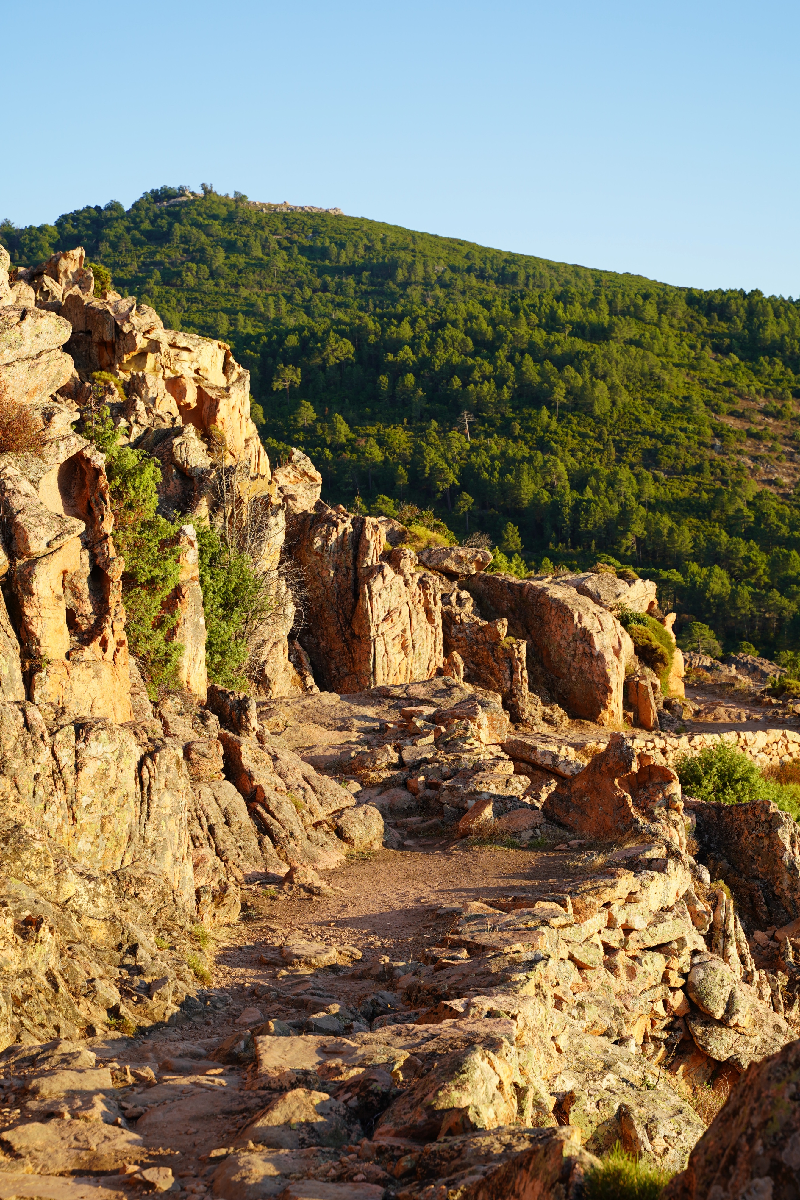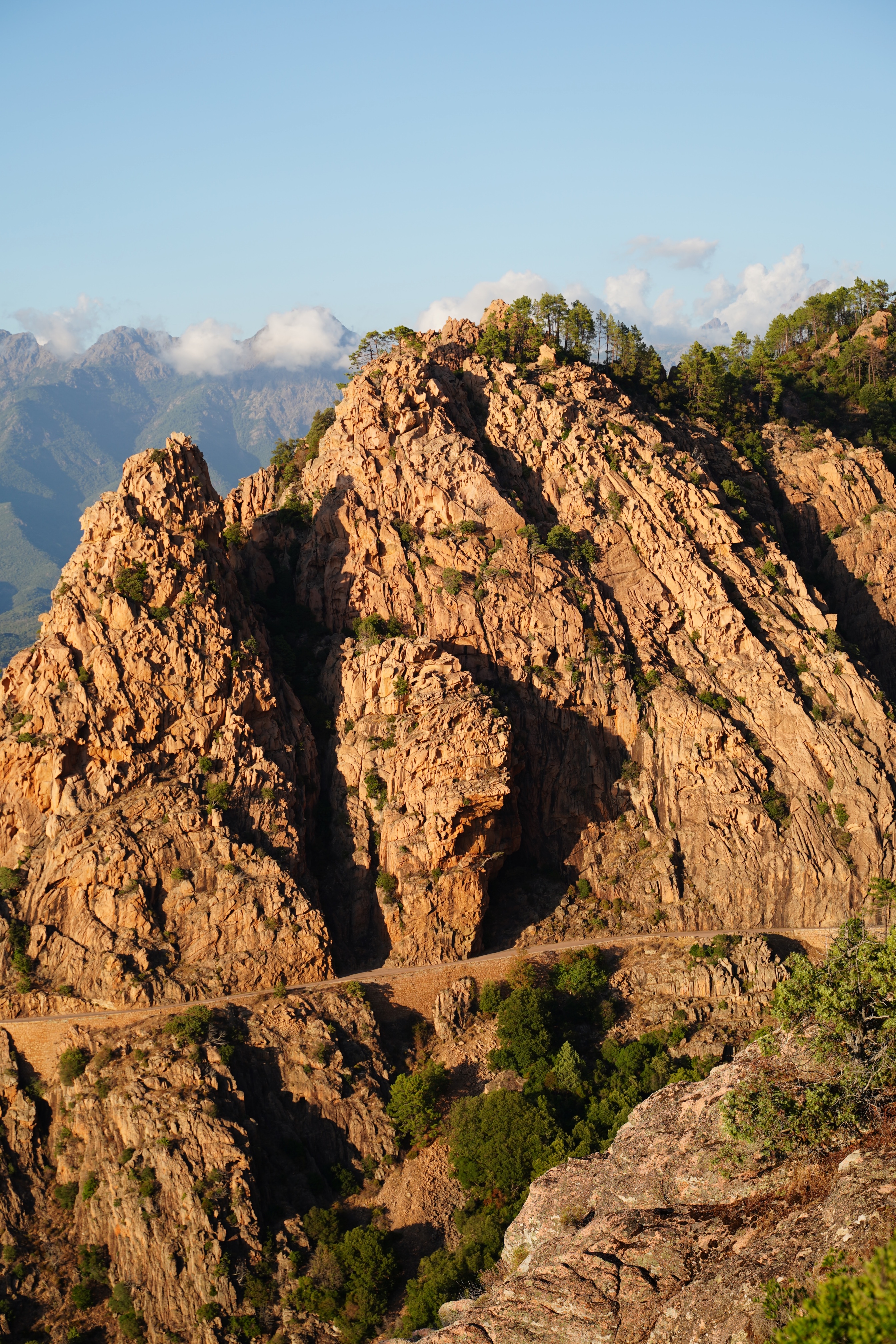 The Calenques are unique rock formations on the west coast of Corse. It is best to start the visit at the parking lot just north of Piana and then explore it via the old mule track (Ancien Chemin des Muletiers) at sunset when the rocks glow in golden hues. And while you’re here, you can experience another highlight. From the same place you climb up to the Capu d’Ortu. From here there is a fabulous view of the coast between Cargèse and Porto. Tip: start early, take plenty of water with you and wear sturdy shoes! The last meters of altitude have to be climbed over the rocks (not difficult and no effort for the normally trained hiker). Cairns show the way up.