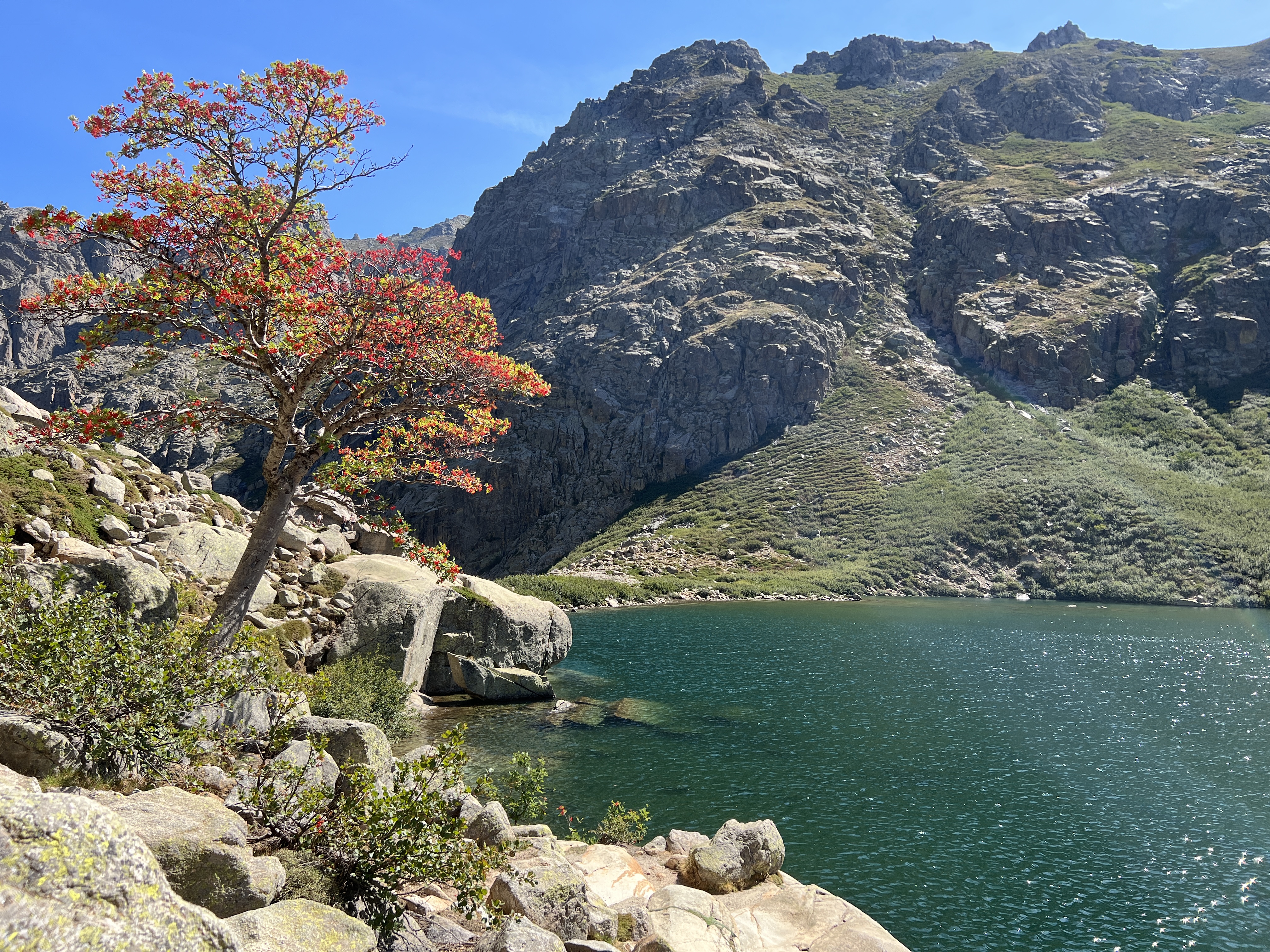 Corte, the university center of the island, is perched on a rock surrounded by mountains. The city has a pleasant size and a nice atmosphere due to the Mediterranean way of life, surrounded by mountains and lively student life. There are also many good restaurants here. If the weather is bad (or to escape the summer heat) head up to the museum in the citadel. From here there is a magnificent panoramic view of the city at sunset. The location also offers a good starting point for hikes in the surrounding mountains. One of the highlights is the hike across the Restonica Valley to Lac de Melo. Those who are still fit here can continue up to the Lac de Capitello. Definitely arrive very early before the masses of visitors arrive and to get one of the few parking spaces. It is a steep hike with easy sections secured by chains and ladders. Sturdy shoes are a must. Attention: the approach via the D623 is exposed and in parts only one-lane passable.